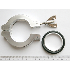 Brand New NW/KF-40 Clamps with centering O-rings (Nitrile Butadiene Rubber). This clamp is used for connecting standard NW/KF-16 vacuum components.