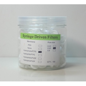 Pack of 100 Disposable Syringe Filters, PTFE, 0.45 μm, 13mm, 1.3cm, HPLC